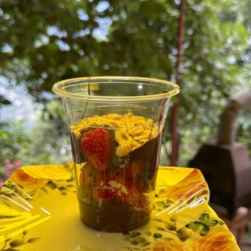 Siyah zeytin, Köz yeşil zeytin, Çivitli yeşil zeytin, Çivitsiz yeşil zeytin, Kaşar, Tulum peyniri, Burgu peynir, Top peynir, Bal, Çilek reçeli, Çikolata, Salatalık, Domates, Patates kızartması, Gözleme (patatesli, kaşarlı) Yumurta, Kuymak, Demlik çay İlave her servis için 120 ₺ Kahvaltı en az 2 kişiliktir
